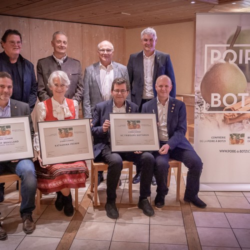 Am 10. Oktober versammelte sich unsere Bruderschaft zu ihrem sechzehnten Kapitel in der Grafenstadt Greyerz. Anlässlich dieses Ereignisses wurde der Kulinarische Verdienstpreis 2025 Herrn Grégory Braillard von La Passion Traiteur in Epagny für sein Birnen-Entremet und Macaron mit Poire à Botzi AOP verliehen.